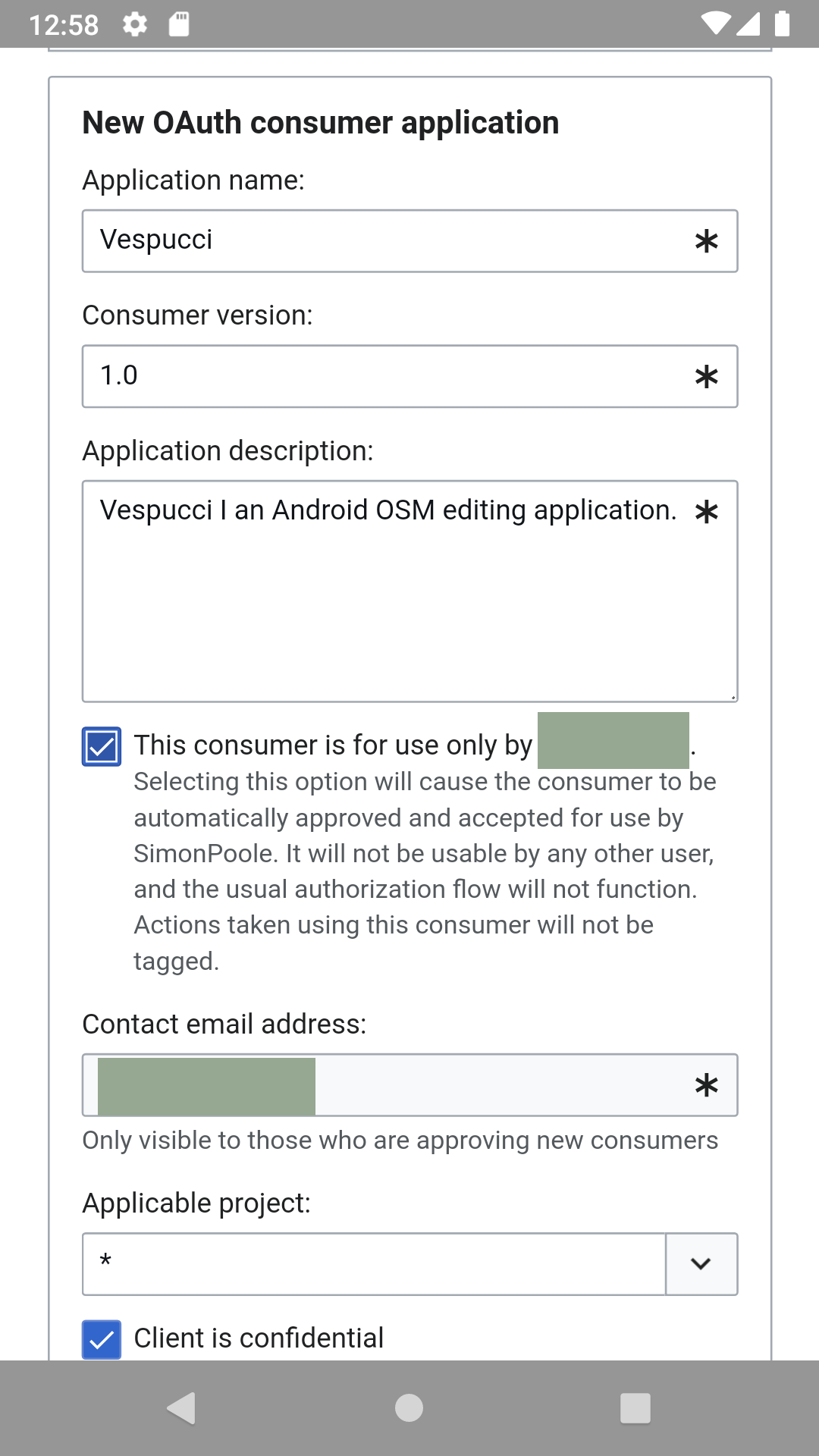 Now you need to authorize access from Vespucci, we will do this by creating a personal key for your account. This process is a bit involved, but is still easy to do even on a mobile device.
